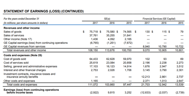 GE Capital seems to be the culprit (see figure below). GE Capital reported 12 billion loss in 2017. And that trend will continue for a few more years. Rest of the segments are quite alright.