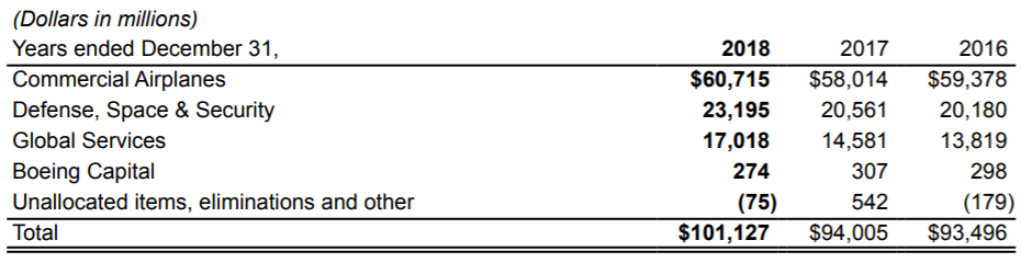 Boeing’s 60 percent of the total revenue comes from the Commercial Airplanes.
