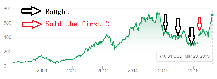The stock hit the bottom in 2018 and I bought more. Again, in margin.