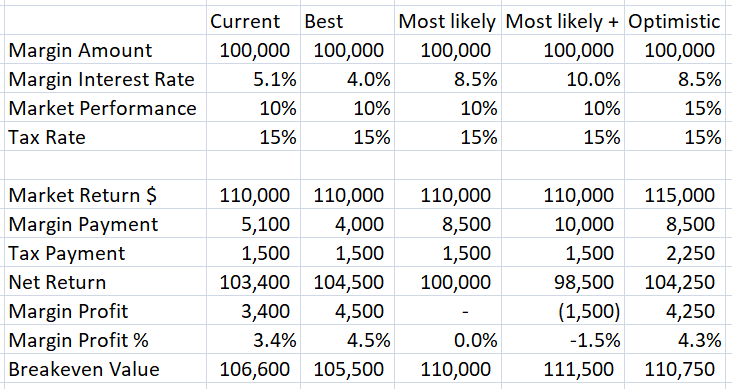 Should the margin interest rate hit 10%, it will yield a loss not profit. 8.5% is a break-even rate assuming the market performance stays at 10%. By the way, the average market performance is expected to be less than 10% in the future.