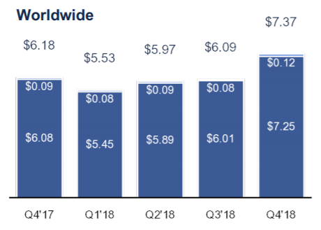 Daily active users on Facebook reached 1.52 billion, up 9% compared to 2017, led by growth in India, Indonesia, and the Philippines. This number represents approximately 66% of the 2.32 billion monthly active users in Q4 2018. Monthly Average Users grew 191 million or 9% compared to last year.