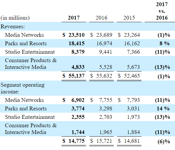 (All segment was down except Parks and Resorts.)