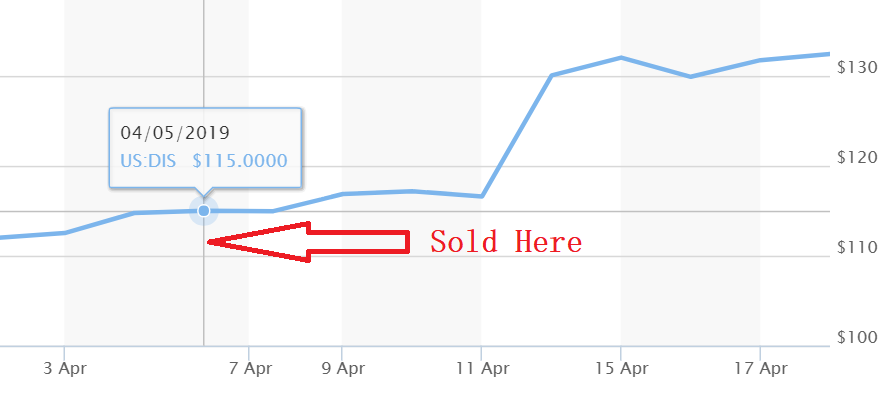 I must be one of the unlucky investors in the world! On 5th April 2019, I sold my Disney holding at $114.65 per share and within a week Disney stock rocketed to $132.41 per share. I certainly felt terrible. Also, I was surprised by the wonder of the stock market. I lost an opportunity to make thousands of dollar had I waited just a week. Well, why did I closed my position with Disney?