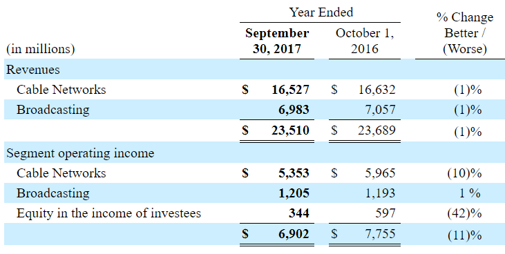 I stood with Disney during all this time. There was no shortage of naysayers, who were sure to see Disney go south. However, I sighted with the optimists. The year 2017 was dominated by cord-cutting, which adversely affected Disney company. ESPN is a premier channel in the cable bundle, which yielded around $7 per subscribers to Disney. Media Networks is the biggest business segment by revenue. People, including me, were inclined to watch stuff online (preferably free) and unsubscribe cable, which helped us save quite an amount per month.