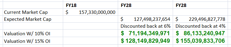 Netflix valuation in the year 2028 is in between $71 and $155 billion. The most optimistic valuation of $155 billion in 2018 is also above the current market capitalization of $165 billion. Netflix is expensive at the current price! There are a lot of factors that need to go absolutely perfect to justify the current valuation. One can obviously argue that the assumptions applied while computing future revenue are wrong. We have to agree to that not because we haven’t use the right assumptions but because assumptions themselves are wrong by nature. Forgetting the future valuation, if you just look at the current financials, which avoids assumptions altogether, it is way expensive as well. I am sorry to the current investors. Apparently, I am one of them!