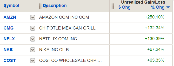 For many years, I bought and sold shares of great companies like Amazon, Apple, Nike, Disney, Costco and more. I did profit from them but this phenomenon of mine was so counterproductive. Since reading that quote, I changed my behaviour to water the flowers and cut the weeds. Surely, the results were in my favor (see below).