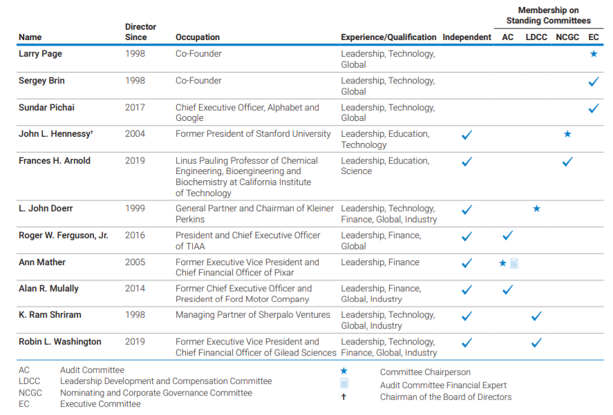 David C. Drummond – Chief Legal Officer with $650,000 base salary. He received $46.6 million in stock award in 2018.
