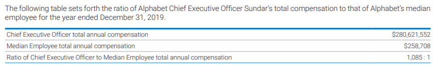 Around $8 million is what Google paid to above directors for their service in 2019. Not a bad deal for four meetings a year with all expense paid in some exotic resort.