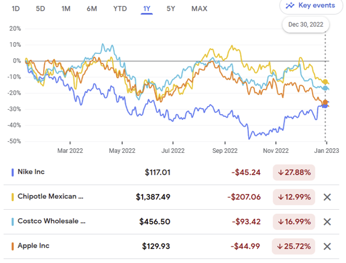 Google, Microsoft, Apple, Costco and Chipotle’s top and bottom line expanded. Although, their stock suffered badly by the general fear of Inflation, Interest rate increase and recession.