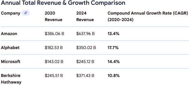 In 2020, they used to bring in around $1 Trillion of revenue and in 2024, they bring in $1.6 Trillion of total revenue, compounding at double digits.